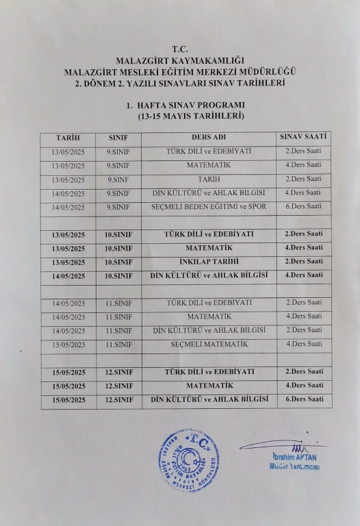 MALAZGİRT MESLEKİ EĞİTİM MERKEZİ MÜDÜRLÜĞÜ OLARAK...