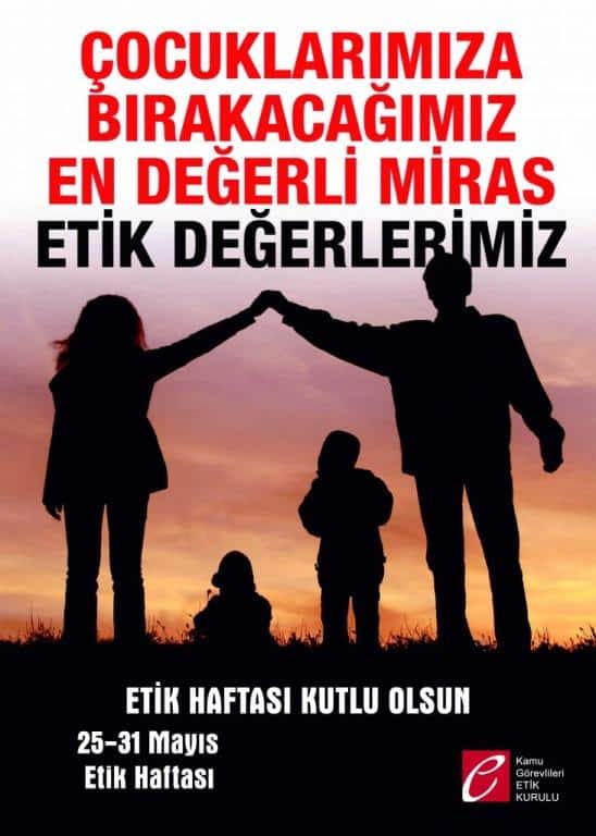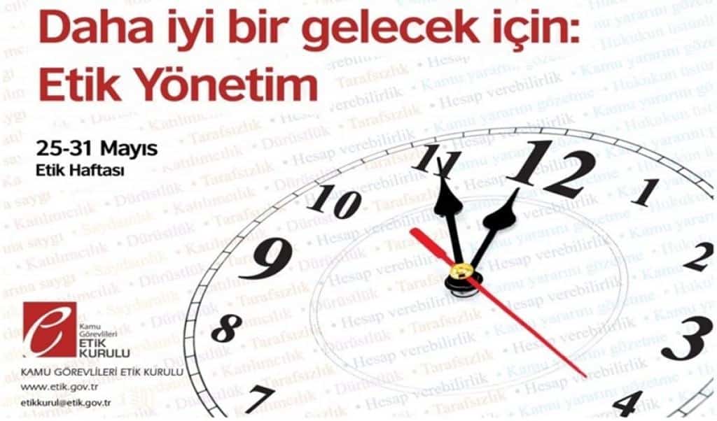 Bu çerçevede kamuda ve toplumda etik kültürünün yerleştirilmesi, farkındalığının arttırılması amacıyla 25 Mayıs Etik Günü ve Haftasında planlanan eğitim programlarında İlgi'de kayıtlı yazı gereğince; Kamu yönetiminde etik kültürünün yerleştirilmesi ve güçlendirilmesine yönelik eğitimler düzenlenmesi, Cumhurbaşkanlığı iş birliği ile hazırlanan etik konulu sunumların (www.uzaktanegitimkapisi.cibiko.gov.tr ve www.etik.gov.tr) personel tarafından izlenmesinin sağlanması, Kamu yönetiminde etik konulu toplantı, seminer, panel, konferans vb. yapılması, Kamu Görevlileri Etik Kurulunun internet sitesinde (https://www.etik.gov.tr/yayinlar/afisler-posterler/) yer alan etik davranış ilkelerinin tanıtıldığı afiş ve posterlerin; pano, bilbord ve web sayfası gibi vb. yollarla tüm personele duyurulması istenmektedir.